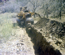 Construction vehicle during the Zion Lodge utilities project. ; ZION Museum and Archives Image 006.04.12-9of124 ; ZION 15933