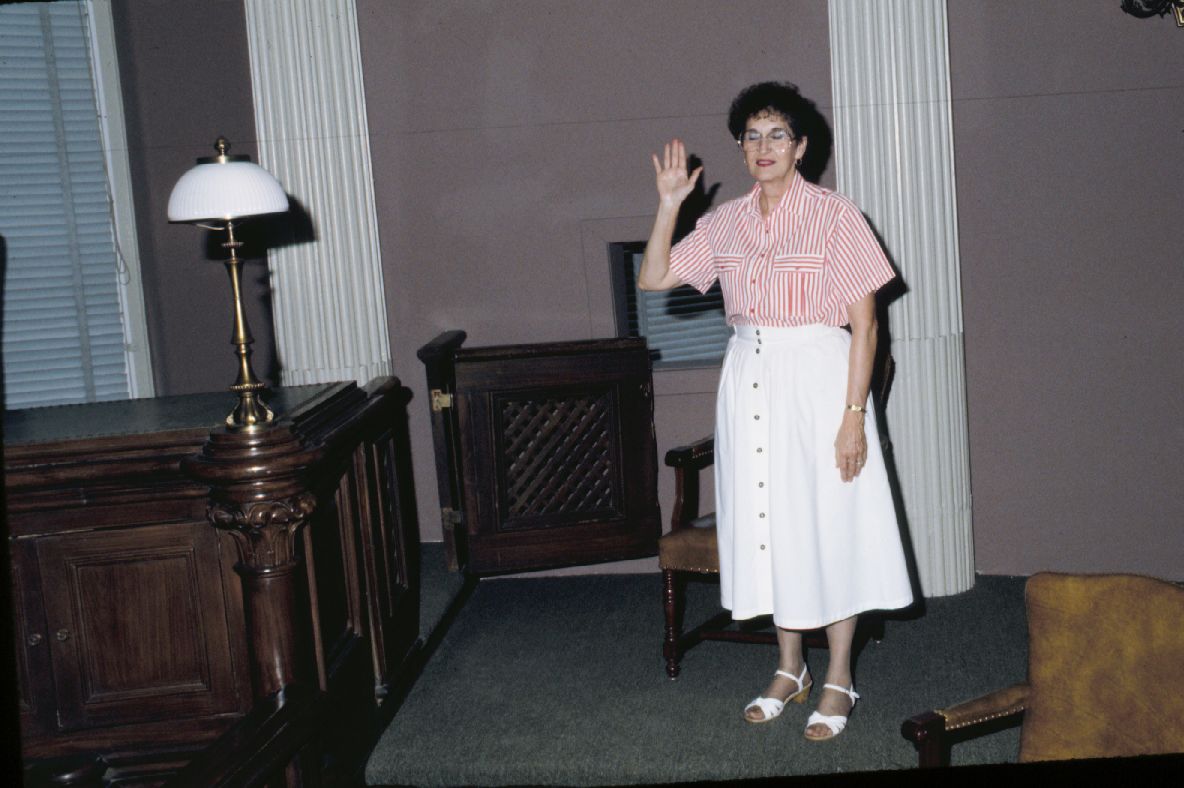 Louise Berra being sworn in ; August 1991
