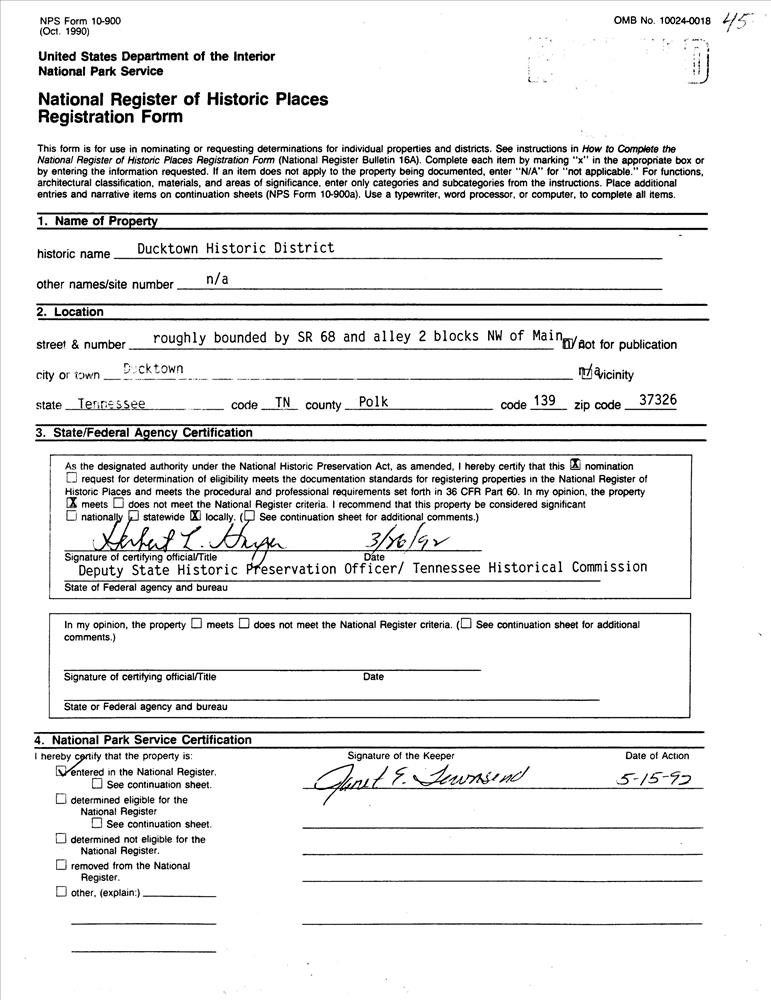 Ducktown ; Roughly bounded by TN 68 and alley 2 blocks NW of Main St.