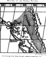 Map showing the first labeling of Sierra Nevada from the Font map (1776). Copied from Farquhar's History of the Sierra Nevada, p. 16. Copied by Michael Dixon.
