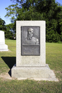 4' x 2' x 6' high, two-piece granite monument with 25" x 39" bronze relief portrait attached to front. Relief panel has inscription and decorative border.