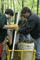 RiverDay is an an annual day of service and celebration in the Cuyahoga Watershed. Activities are coordinated by Friends of the Crooked River. Cuyahoga Valley National Park is a partner. Our volunteers remove trash from dump sites in several locations and invasive plants from the area around Howe Meadow. || Cuyahoga Valley Trails Council volunteers act as crew leaders at one of several trash dump sites on RiverDay 2006.