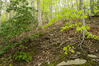 Oak - Beech / Heath Forest. Mountain laurel shrub on left; American beech sapling on right.Photographer: Sam Sheline, courtesy of NatureServe; Hardwood Forest (Northern Atlantic Coastal Plain) ecological system; Oak - Beech / Heath Forest on Theodore Roosevelt Trail;