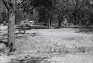Trees, picnic tables, and grills in South Campground. ; ZION Museum and Archives Image 003.01.03-6of21 ; ZION 15933