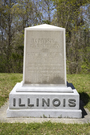 5' x 4'2" x 6'6", gray granite monument has double step base supporting an obelisk. ILLINOIS is in raised polished letters on 2nd step; face of obelisk is polished and inscribed with unit designation, commanders, campaign record.