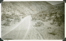 Heavy gravel dirt road with tire tracks leading up desert canyon. Possibly Grapevine Canyon. Circa 1923. Number in black ink lower left corner refers to historic photograph numbering system: 1113. Listed in earlier catalog record Other Numbers Field: 2. Black and white, 5 x 8 inch, horizontal format. Corner mounted on photograph album page.