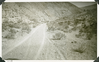 Heavy gravel dirt road with tire tracks leading up desert canyon. Possibly Grapevine Canyon. Circa 1923.