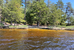 Houseboat Blueberry Island East at Rainy Lake, Sand mooring; Shore In