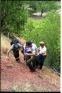 Color photo of SAR team transporting injured man. ; ZION Museum and Archives Image 107_04_01001 ; ZION 15933