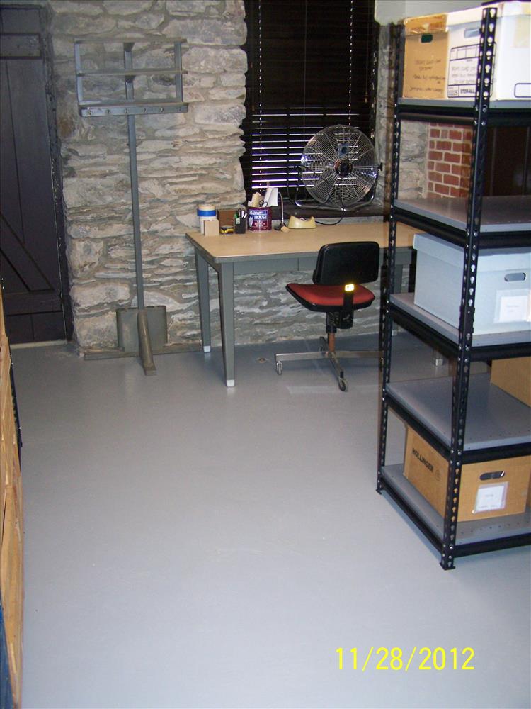 Photographic views as follows: floor in the basement of Building 1B where the ACM tile was removed and the concrete was painted; ceiling pipes in Building 1D where the ACM was removed and new insulatoin added; room in the Shipley School Building where the ACM window sealant was removed and replaced with new sealant; and the basement floor of the Nash Main House where ACM tiel was removed. Photos taken on November 28, 2012 in Harpers Ferry NHP/NPS.