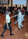 Dancers listen for the caller's instructions at a contra dance in Boston Township School House. || New England Style contra dancing was probably brought to the Cuyahoga Valley by 19th century settlers arriving from New Hampshire, Connecticut, and New York. It is similar to square dancing and performed by couples facing in two opposite lines. Before each dance, the caller explains the figures while walking the dancers through them. Cuyahoga Valley National Park hosts contra dances twice a month.