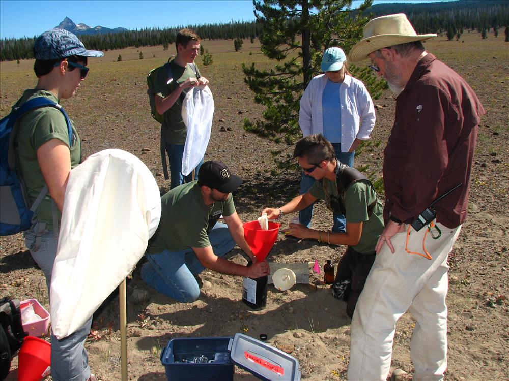 2016 Crater Lake BioBlitz, Pumice Desert Field Team Preparing a Captured Beetle Specimen in the Field