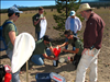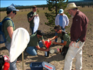 The Pumice Desert Field Team preparing a captured beetle from a trap in the field with subject expert, Dr. Larry Powers, Professor (ret), OIT.