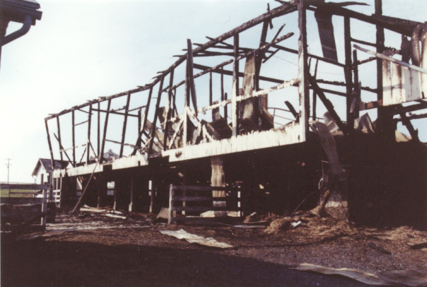Eisenhower Farm 2 Bank Barn, view of barn after fire damage.