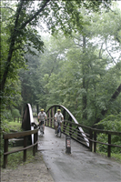 At Cuyahoga Valley National Park volunteers perform a wide variety of duties during every season of the year. Currently over 2,021 volunteers donate over 70,195 hours to the park. || Trailblazer volunteers assist the park by patrolling the Towpath Trail in pairs on bicycle. These volunteers are riding just north of Hunt Farm.