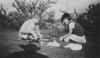 Margaret Boles and Helen Tsuchiya crafting outside on March 27, 1926.