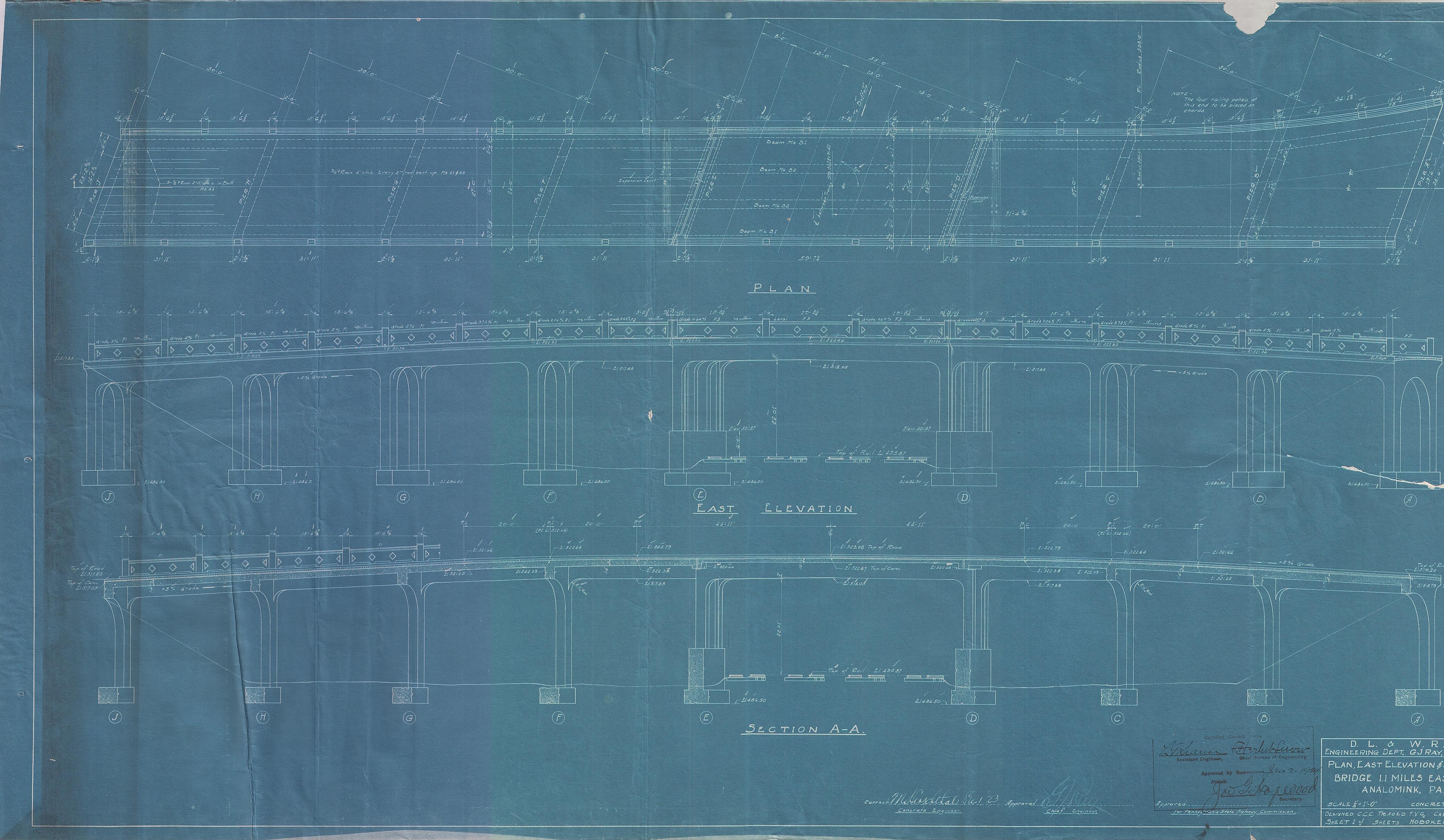 Bridge--Plan, elevation and section--1.1 miles east of Analomink, PA [1923.11.20] Concrete Department--Sheet no. 1 of 6