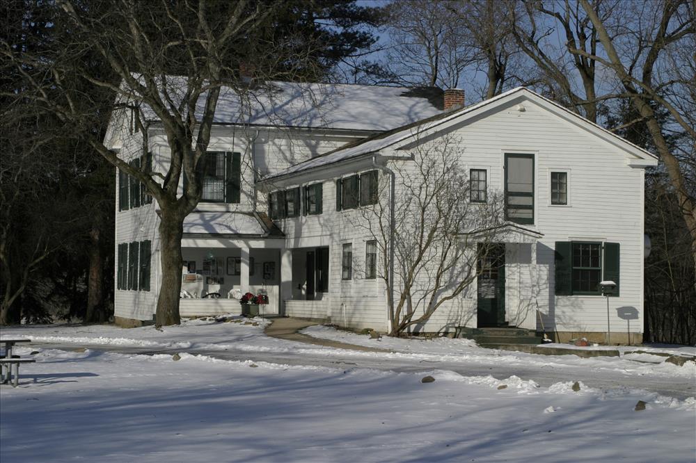 A visitor is at Stanford Hostel in the winter. || Located near Peninsula, Ohio, Hostelling International- Stanford Hostel is a historic nineteenth- century farm home built by George Stanford, one of the first settlers in the Western Reserve. The farm house was built in about 1830. Purchased by the National Park Service in 1978, the hostel has been carefully restored by the National Park Service and Northeast Ohio Council (NOC) of American Youth Hostels (AYH). The Stanford Hostel opened its doors in 1986 to visitors from around the world. AYH is a non-profit organization working exclusively to provide educational travel experiences for people of all ages.