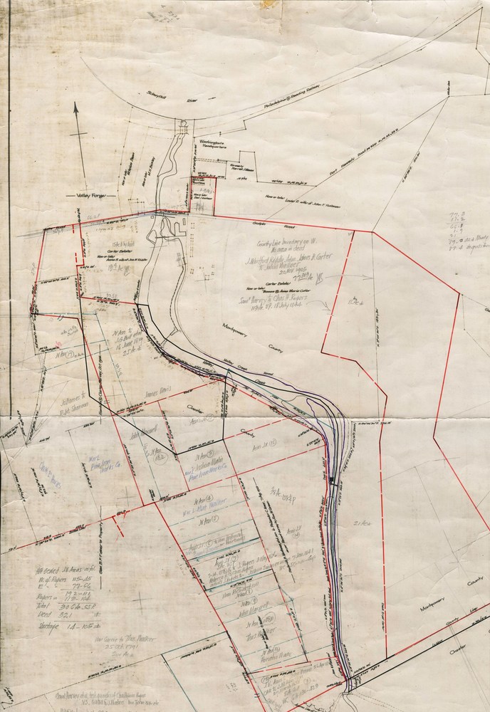 Document: Description of a Tract of Land A Portion of the "Continental Camp Farm" of Mary E.S. Evans, Lying partly in Upper Merion Township, Montgomery County, and partly in Tredyffrin Townsip, Chester County, Pennsylvania