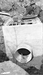 Channel change #2 before turning river through. New Civilian Conservation Corps (CCC) rock quarry opened up to complete river projects. Man on bank. ; ZION Museum and Archives Image ZION 13651 ; ZION 13651