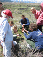 Students looking a vegetation regrowth after fire