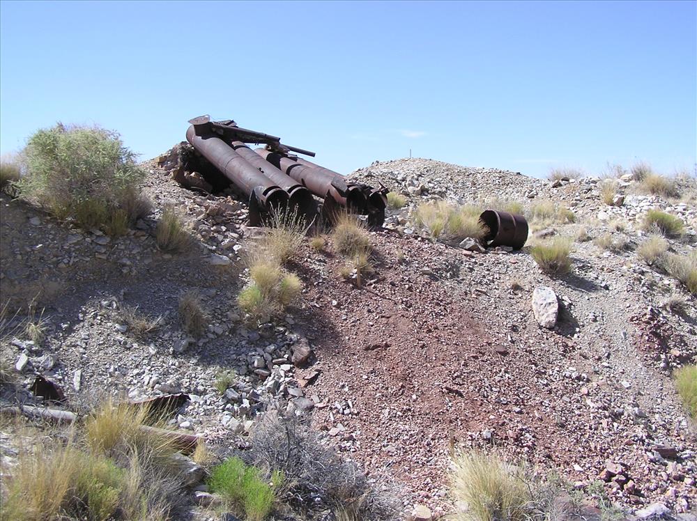 Mill equipment and mercury contaminated tailings at Copper Glint Mill May 31, 2007