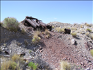 Contaminated tailings above wash at Copper Glint Mill, an abandoned ore processing mill on Mojave National Preserve. Copper Glint Mill is located about 2 miles north of Interstate 15 (I-15) near Mountain Pass, CA. The site has concentrations of heavy metals above human health and ecological risk levels.