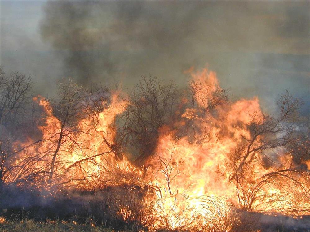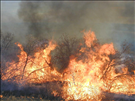 High intensity flames in dense brush during Far View prescribed fire, November 2001