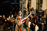 View of civilians walking 15th Street after President Jimmy Carter's Inaugural Parade in Washington, D.C.
