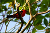 red and black scarlet tanager perched in a tree