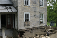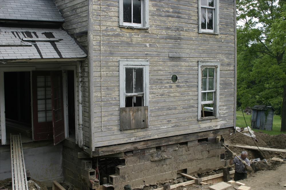 Maintenance employees work on the foundation of the Martin House, one project in CVNP's Historic Structures Rehabilitation Program. || From 2006-2007 the Martin House was rehabilitated as part of CVNP's Historic Structures Program. This property will likely be leased as a Countryside Initiative farm. CVNP enters into agreements with sustainable farmers in order to preserve the rural heritage of the Cuyahoga Valley.