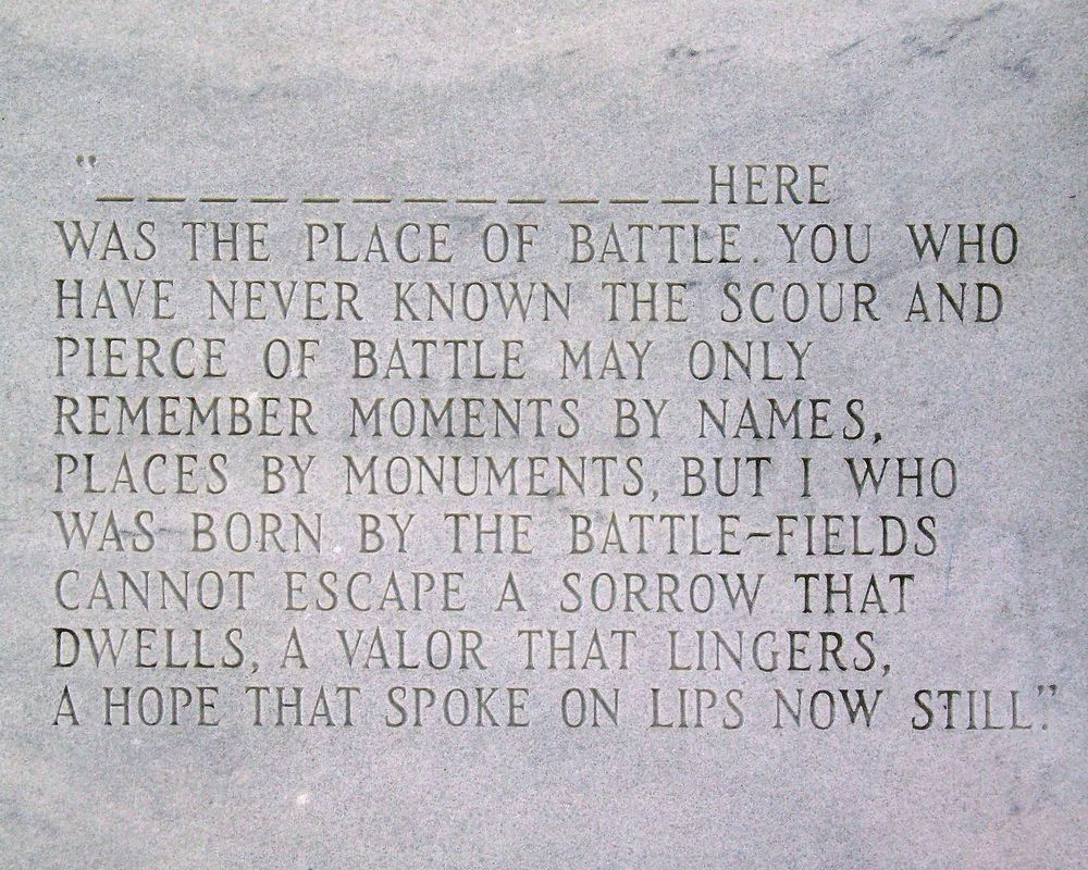Erected by the Tennessee Division of the United Daughters of the Confederacy in 1933, the Confederate Monument commemorates the Southern soldiers who fought and died at Fort Donelson. The exact location of Confederate graves is unknown. || The Confederate Monument is an approx. 35' tall marble shaft with inscriptions on three sides and a bronze figure of a Confederate soldier on the fourth (east) side. Shaft features a low relief battle flag and CSA monogram. The surrender of Fort Donelson was the North's first major victory of the Civil War. The Confederate Monument is associated with commemorative efforts at Fort Donelson and is a representative example of post-Civil War memorial architecture. || Text of NPS sign at the Confederate Monument: "Because they had fought against the United States, Confederate dead were not buried in the National Cemetary. This monument, erected by the United Daughters of the Confederacy, is a memorial to those men. It was erected in 1933."