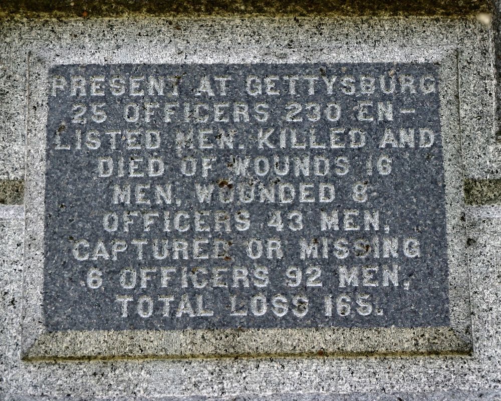 Marks position held by 107th Pennsylvania July 1 1863 from 1pm until forced to retire to town. Position marker (1913) marks evening of July 2, 1863. 1 of 110 Mns in Park to PA commands at Gettysburg. Located on W side Doubleday Ave, S of Robinson. || Mn, 2 flank markers & 1 position marker. Rough base, 6' sq. Rough & smooth 4 course shaft, 4' sq 13'5" high, w/ cross gable cap. Inscriptions on polished panels & bronze state seal. Flat topped flank markers, 1'x1'x1'7". Position marker 2'1"x1'7"x4'