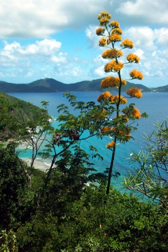 Century plant is a perennial herb with prickly edged leaves with sharp spine and the tip. is common in Puerto Rico, St. Thomas and St. John. the flower is a panicle 15 to 24 feet tall with large yellow flowers clusters on the top half. The population has been greatly reduced due to the introduction of a weevil.