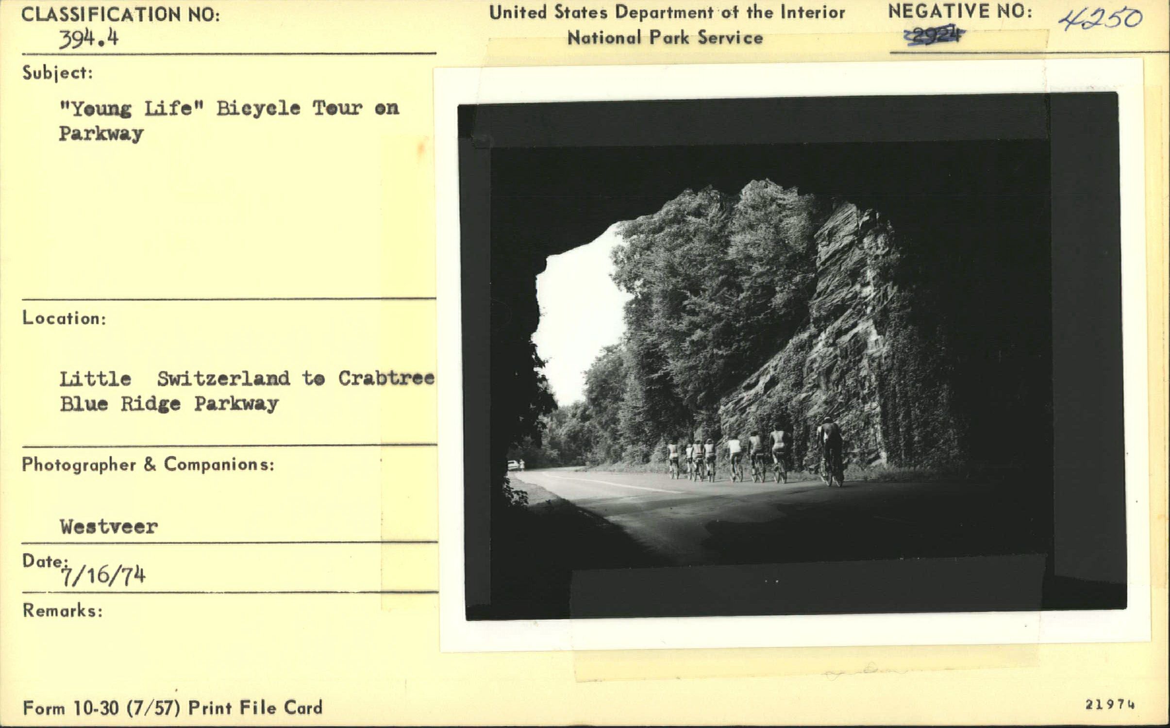 "Young Life" bicycle tour on the Parkway, near Wildacres Tunnel