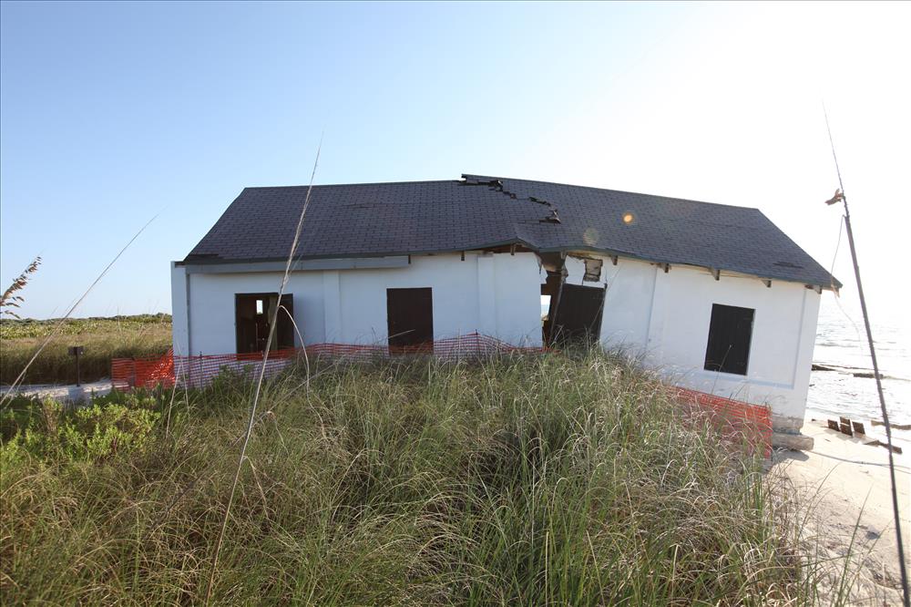 View looking south at the north façade of the collapsed Loggerhead Key Boathouse located on the western shore of Loggerhead Key.