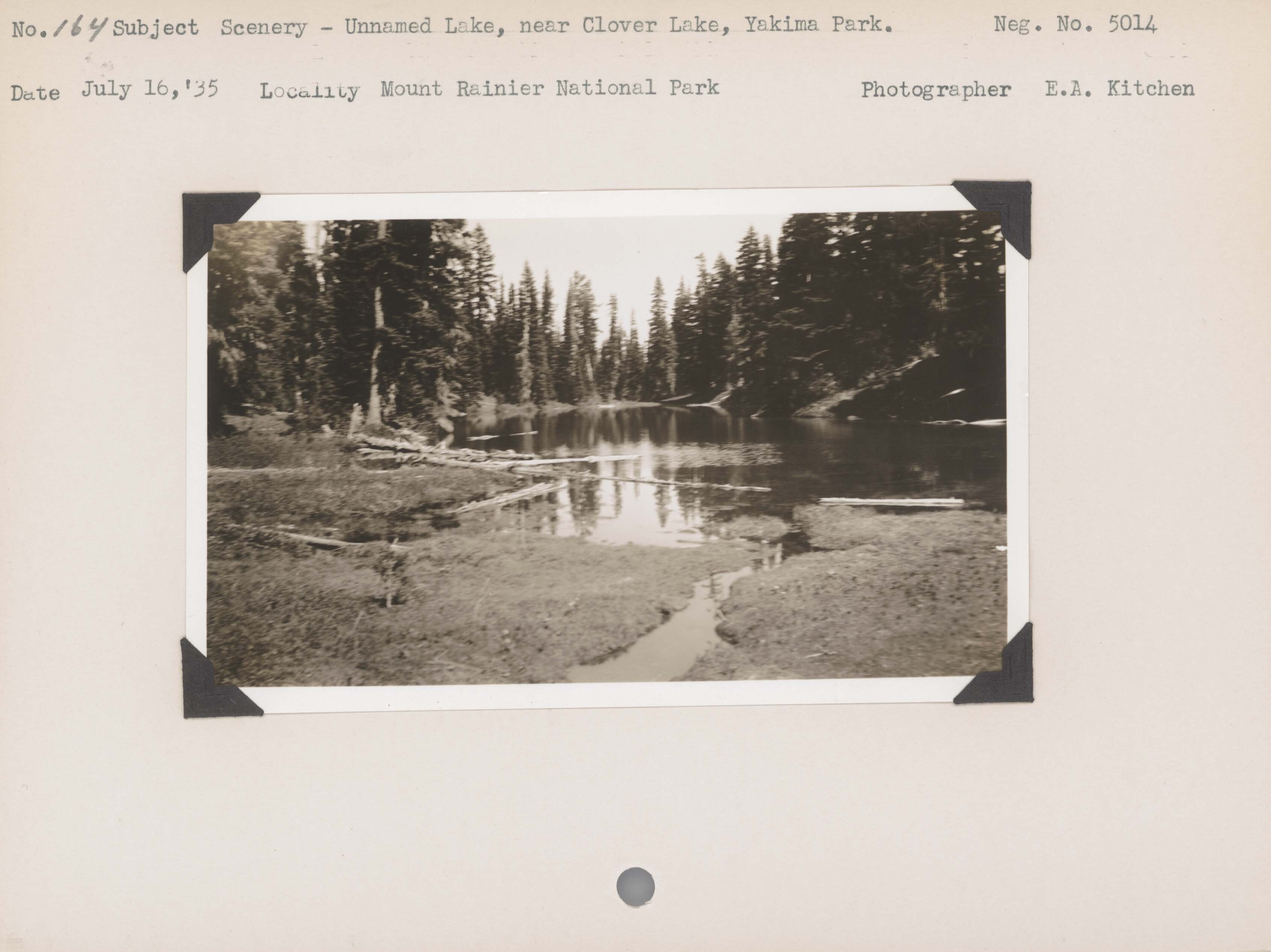 Scenery – Unnamed Lake, near Clover Lake, Yakima Park. Negative #: 5014. Location: Mount Rainier National Park.