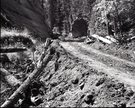 Dirt road from Potato Hollow to Kolob Creek with a small green fir tree uprooted and pushed off road. ; ZION Museum and Archives Image 101_02_003 ; ZION 8291