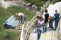 ARRA Funded Trail Crew, rehabilitation of Cliff Shelf Trail during the Spring and Summer of 2010. Crews removed arsenic treated wooden boards and replaced them with recycled plastic lumber boards.