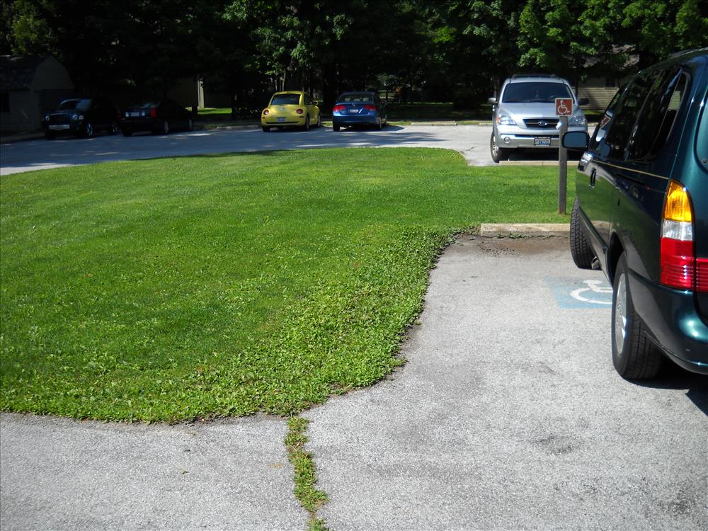 Water pooling at corner of Handicap Acess parking space in parking lot of Visitor Center at James A. Garfield National Historic Site. PMIS project funding requested to install a catch basin and connect to drainage system to alleviate pooling.