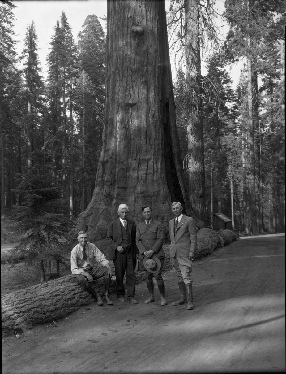 Unknown Photographer, 310426, Giant Forest, SNP, Misc. Groups, General Craig, Col. Singleton, Col. White. Ford Spigelmyre 2nd from right.