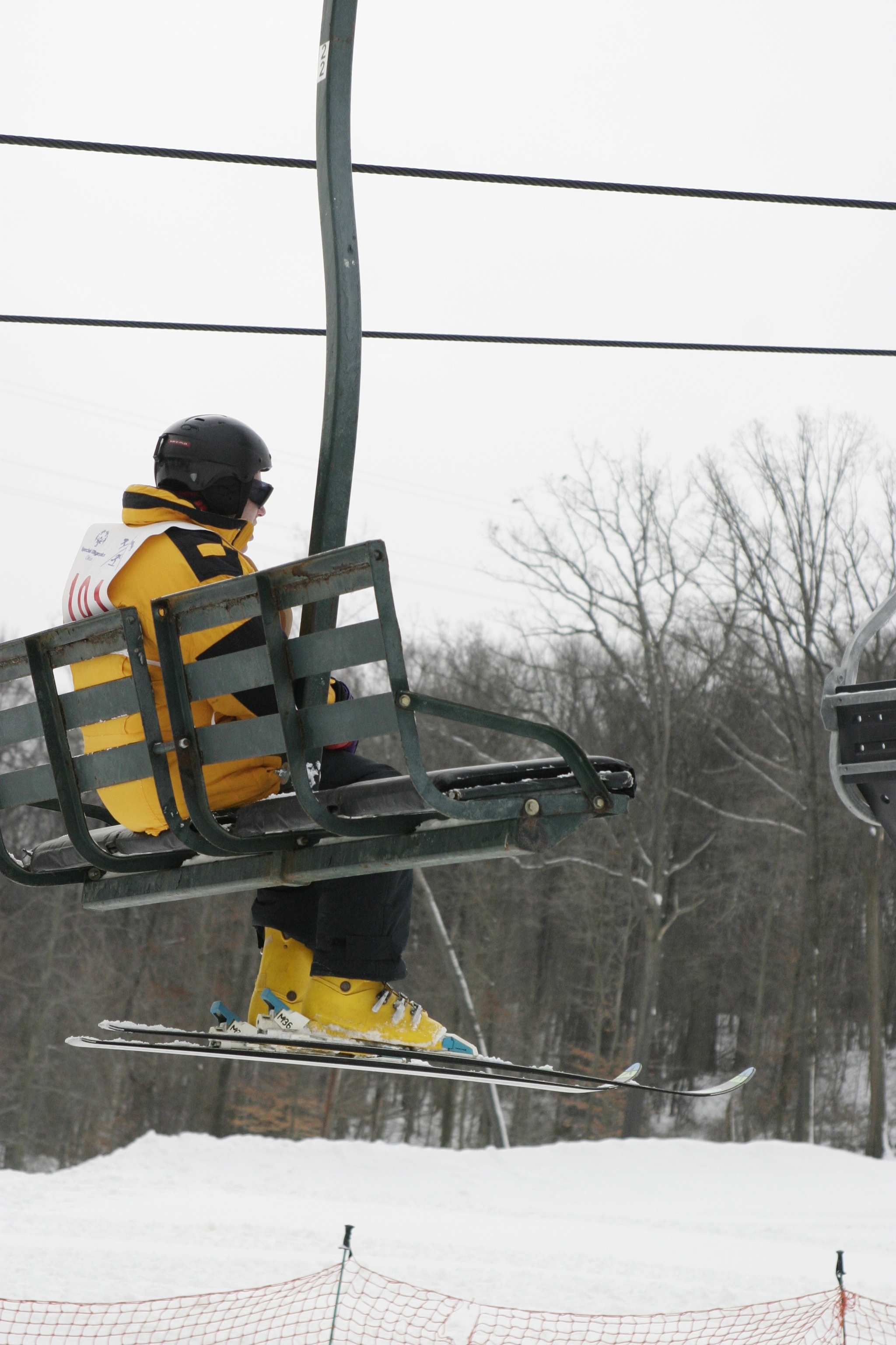 Athletes compete in downhill skiing events at Bradywine Ski Resort in Cuyahoga Valley National Park. These photos feature the athletes on the chairlift. || 2007 was the 25th anniversary of Cuyahoga Valley National Park and Special Olympics Ohio partnering to offer the Ohio Winter Special Olympics. Skiing events are held within the national park. Ice skating events are at Kent State Ice Arena. Special Olympics is an international organization dedicated to empowing individuals with intellectual disabilities to become productive, physically fit, and respected members of society through sports training and competition.