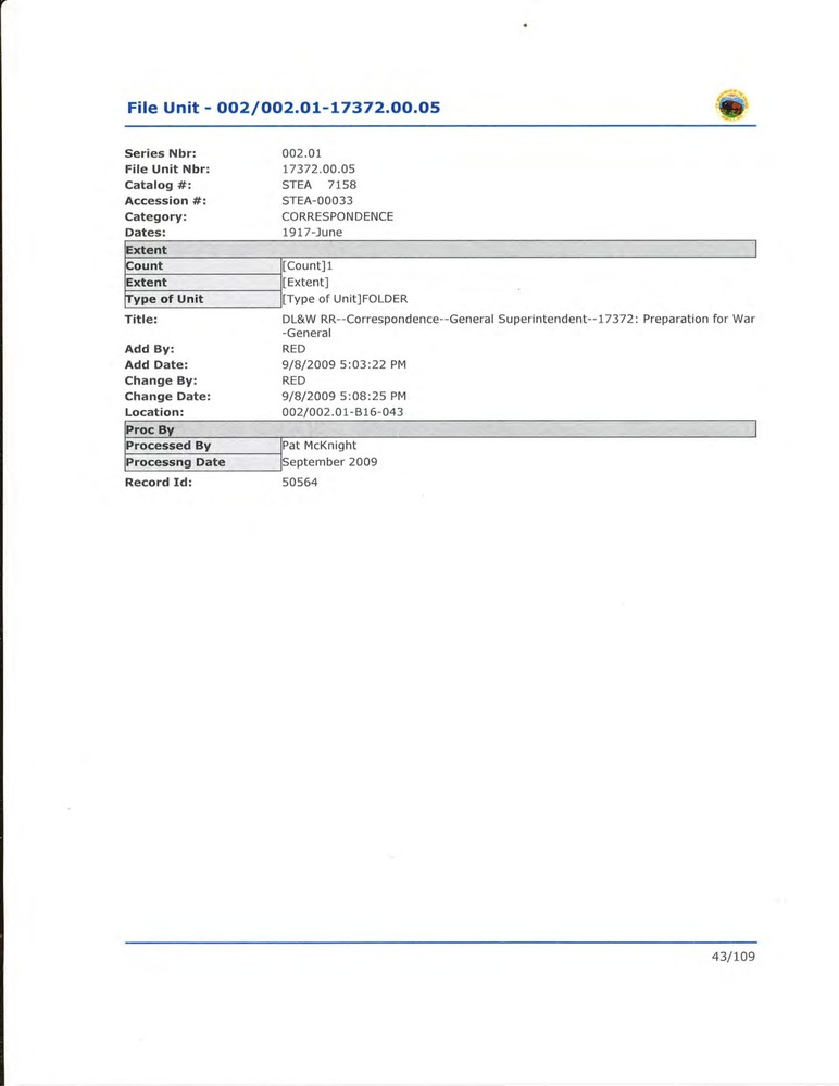 DL&W RR--Correspondence--General Superintendent--17372: Preparation for War-General