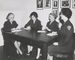 Wilhelmina Harris, Marianne Potts, Anne Boyes, and Helen Nelson wear NPS uniforms and sit at a table.