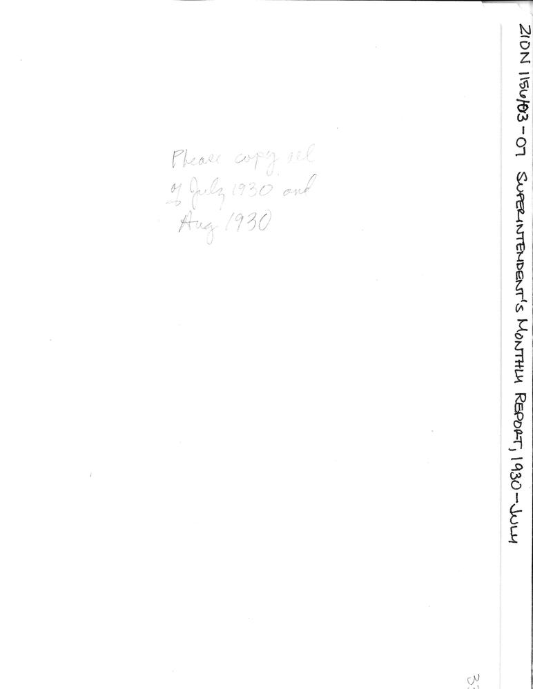 Report on the conditions of Zion and Bryce for July, 1930 written on August 5, 1930