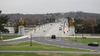 B-roll of cars driving and pedestrians walking across Arlington Memorial Bridge facing in the direction of Arlington National Cemetery