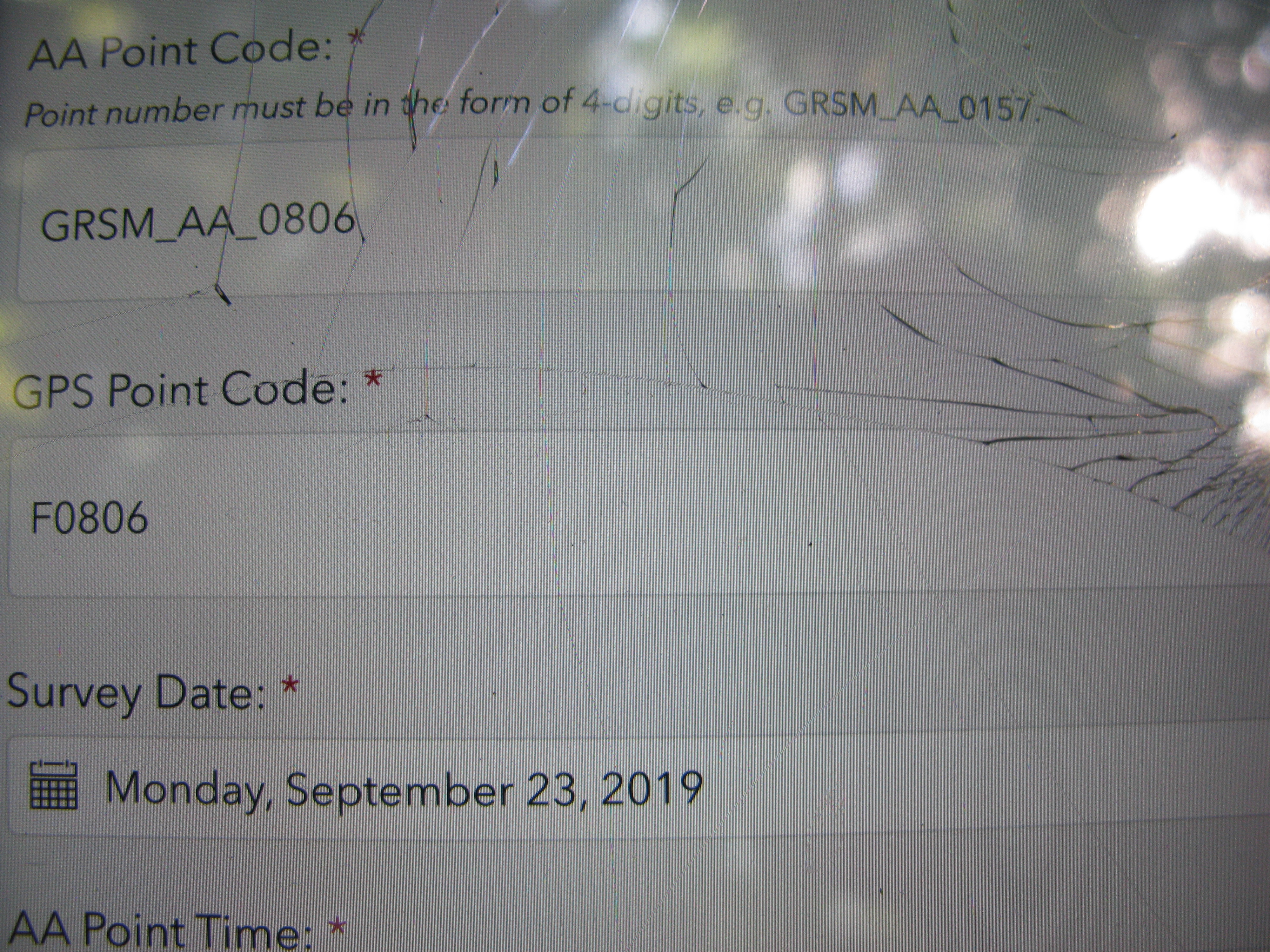 Plot Code: GRSM_AA_0806_1 from the Great Smoky Mountains National Park (GRSM) Accuracy Assessment.