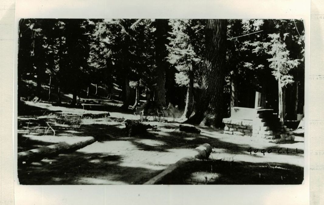 Subject: Rim Village campground with fireplaces constructed by CCC enrollees Location: Rim Village Photographer: F. G. Lange Collection Date Taken: ca. 1934 [Image not located in Francis G. Lange Collection CRLA 8883; however, Lange is likely photographer as image bears Lange's labeling format with signature "L"; EKT 26Jan2010]