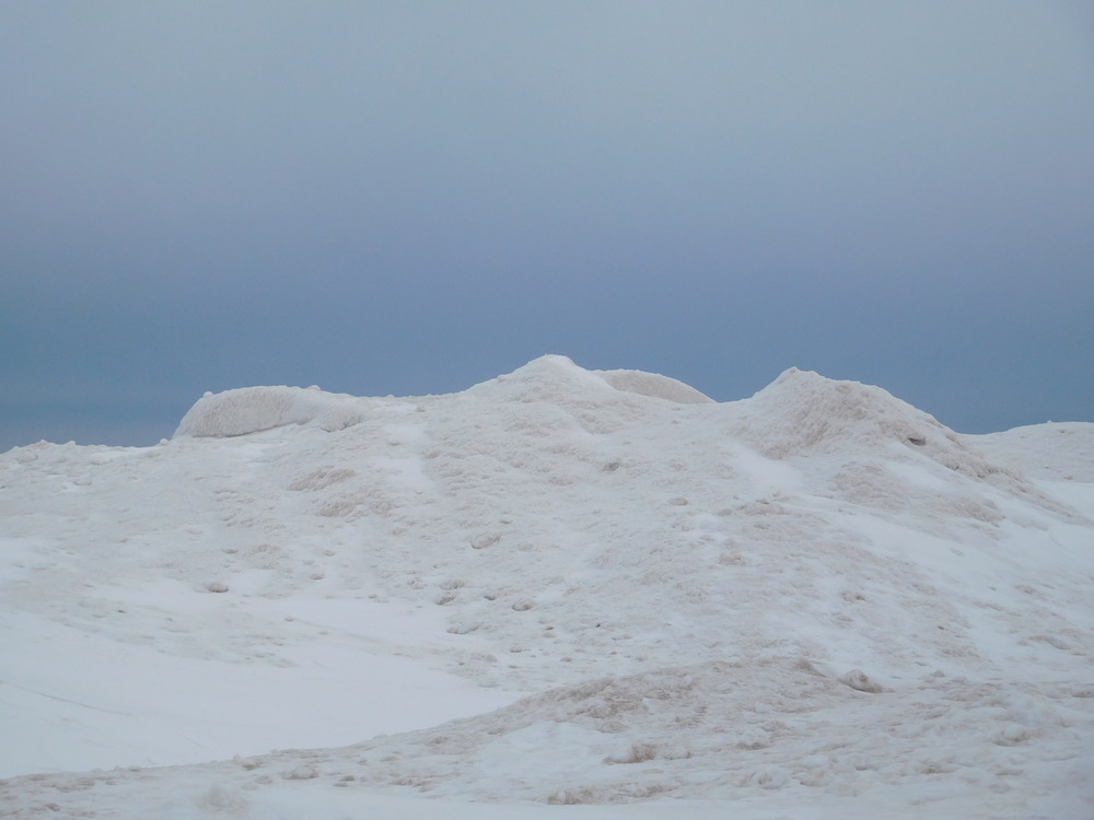 Snow and ice form a "snow dune" on the beach