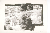 Artist's interpretation of an 1820 Post of Arkansas street scene. Post of Arkansas was the capital of Arkansas Territory from 1819 until 1821.